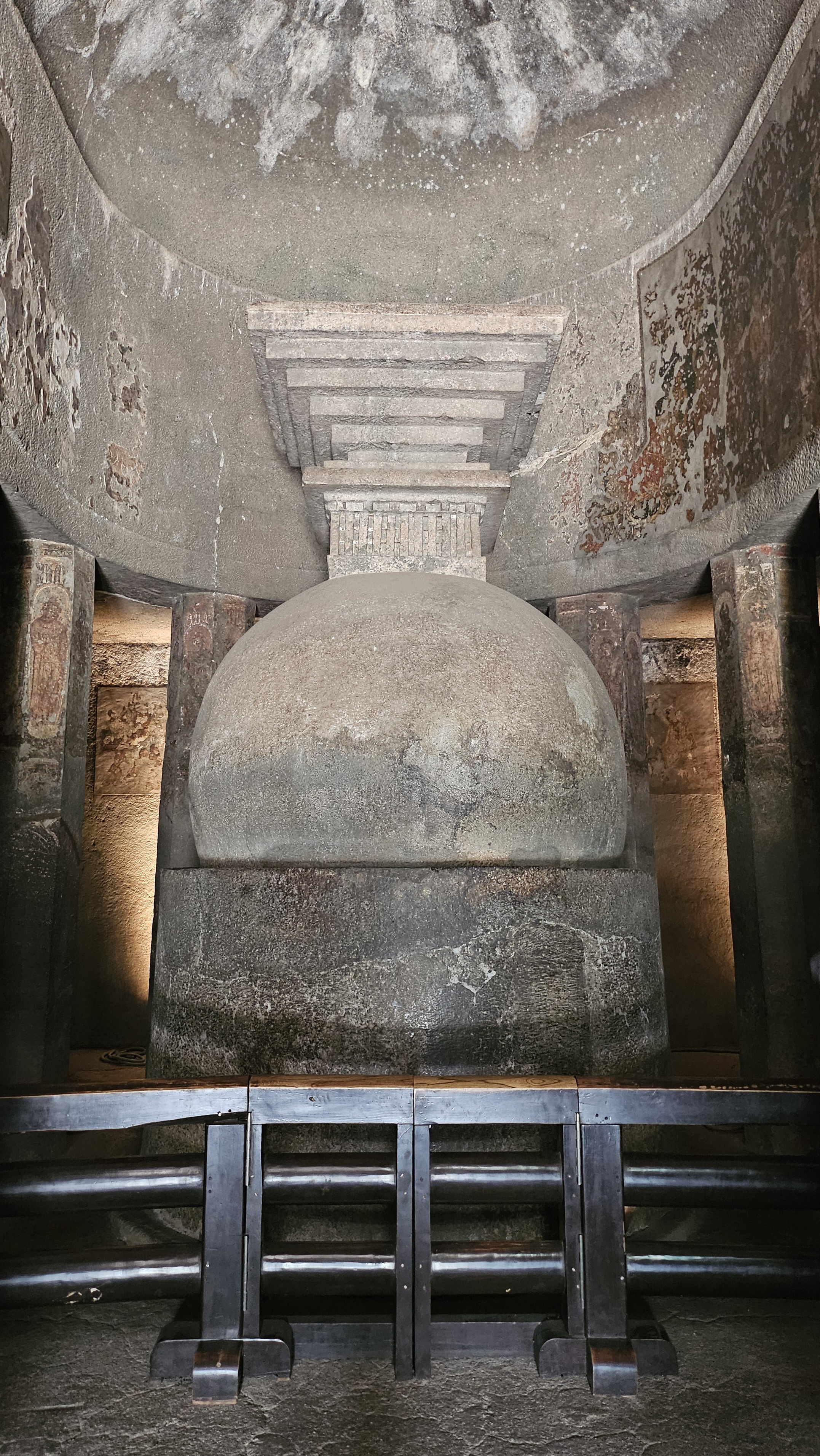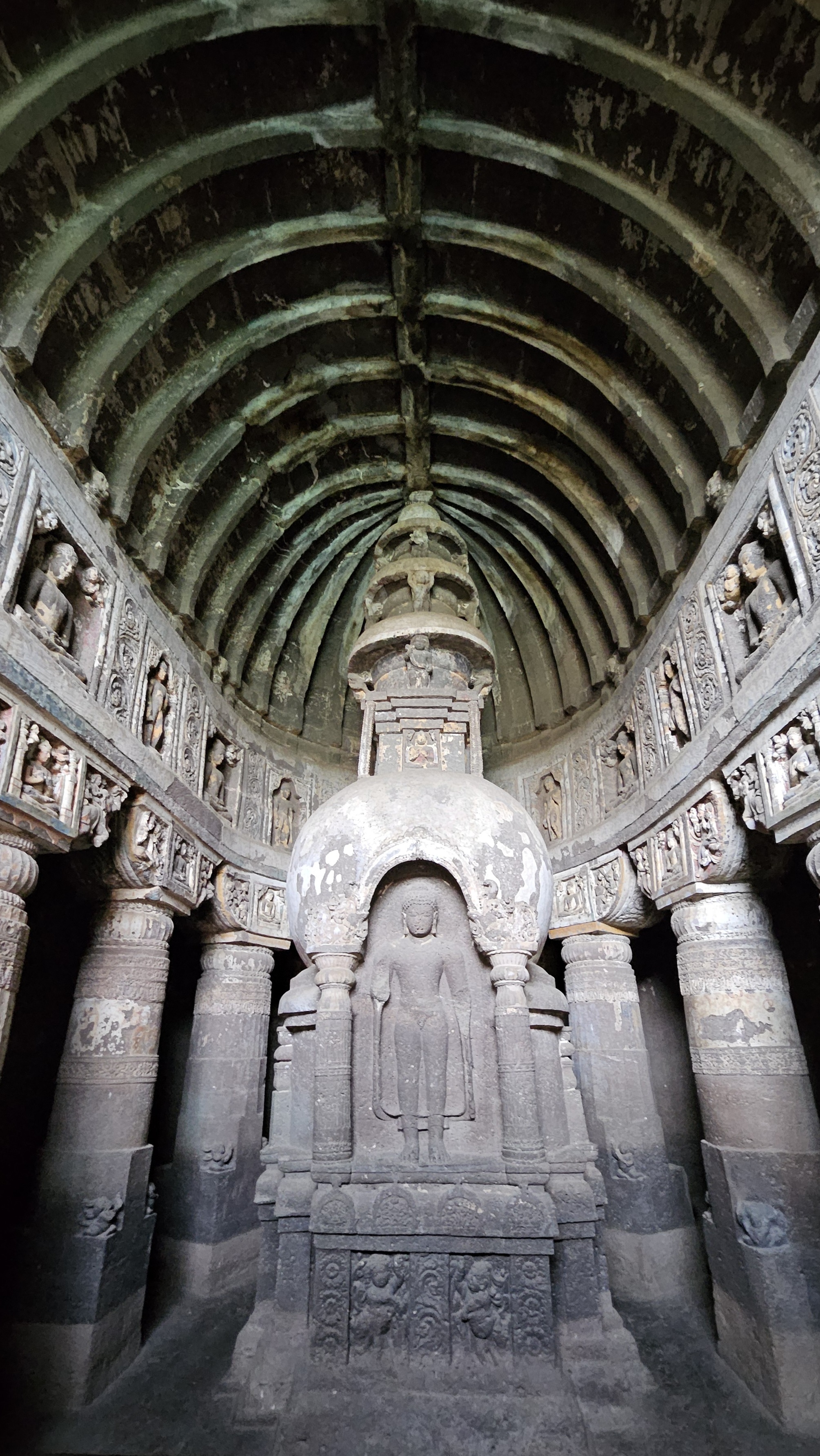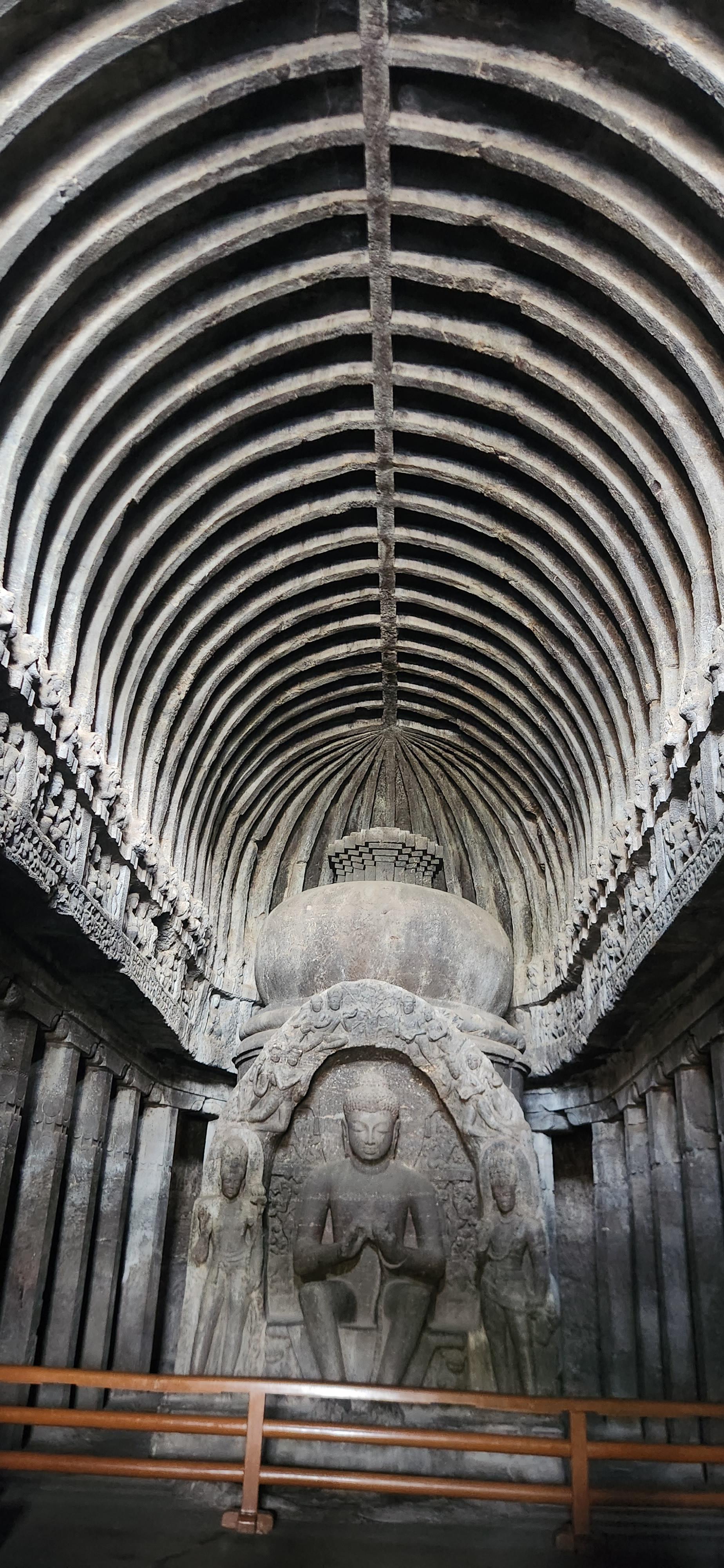 불교석굴사원은 크게 차이티야(chaitya)와 비하라(vihara)의 두가지 형식으로 나눌 수 있다. 차이티야는 예불을 위한 공간으로 둥근천장과 불법을 상징하는 탑이 중앙에 자리한다. 비하라는 승려들이 기거하는 승방으로 모임을 위한 넓은 중앙홀과 입구를 제외한 삼면에는 작은방들이 있다.