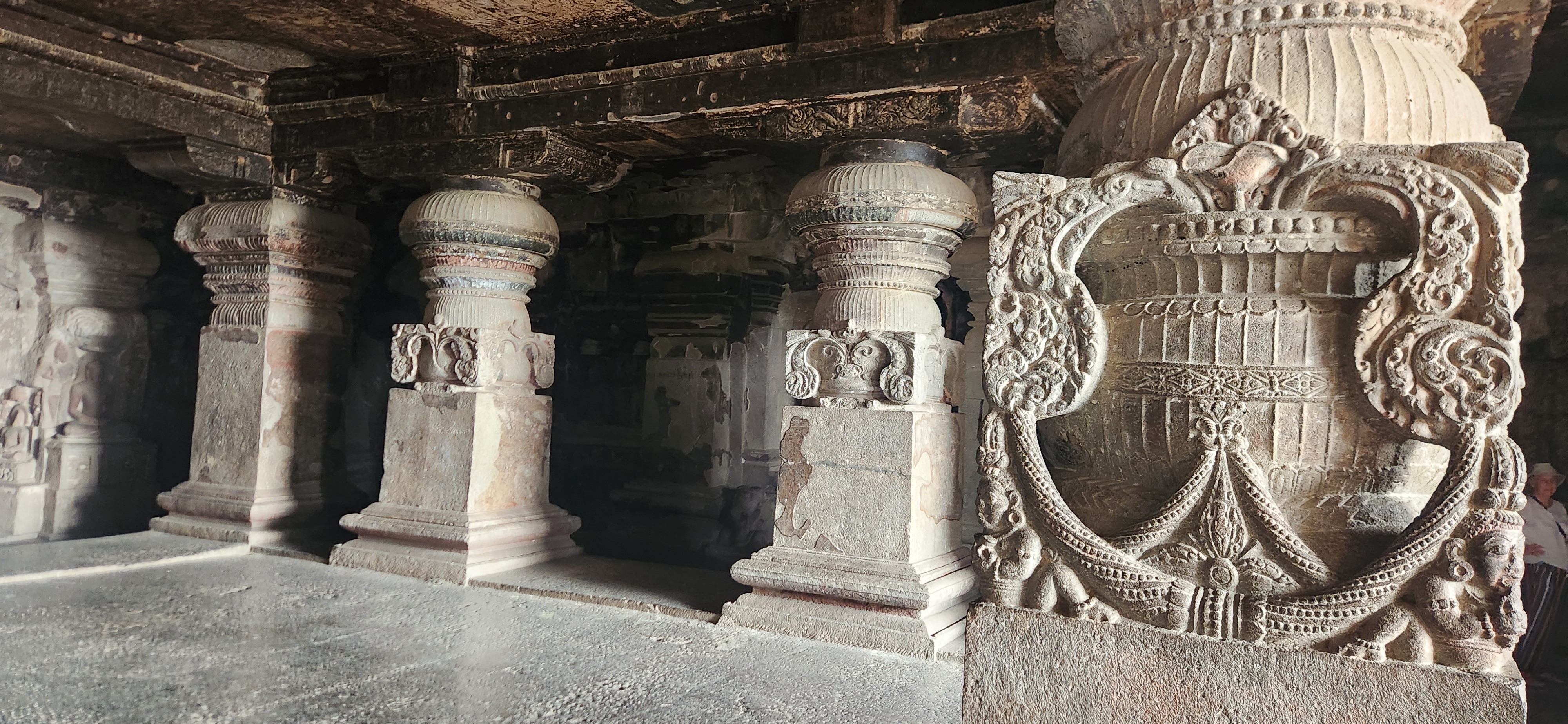 엘로라로 향한다. 엘로라는 아우랑 가바드 북서 20km 지점의 바위산에 조성된 34개의 석굴이다. 불교 미술의 보고인 아잔타 석굴과는 달리 불교, 힌두교, 자이나교 유적이 혼재해 있다. 6C부터 500년이 넘는 기간 동안 조성되었으며 시배별로는 불교, 힌두교,자이나교 순이다. 여러 종교의 석굴이 한 장소에 공존하는 것으로 보아 이슬람이 들어오기 전 오랜기간 동안 여러 종교가 평화롭게 공존하고 있었던 것으로 보인다.