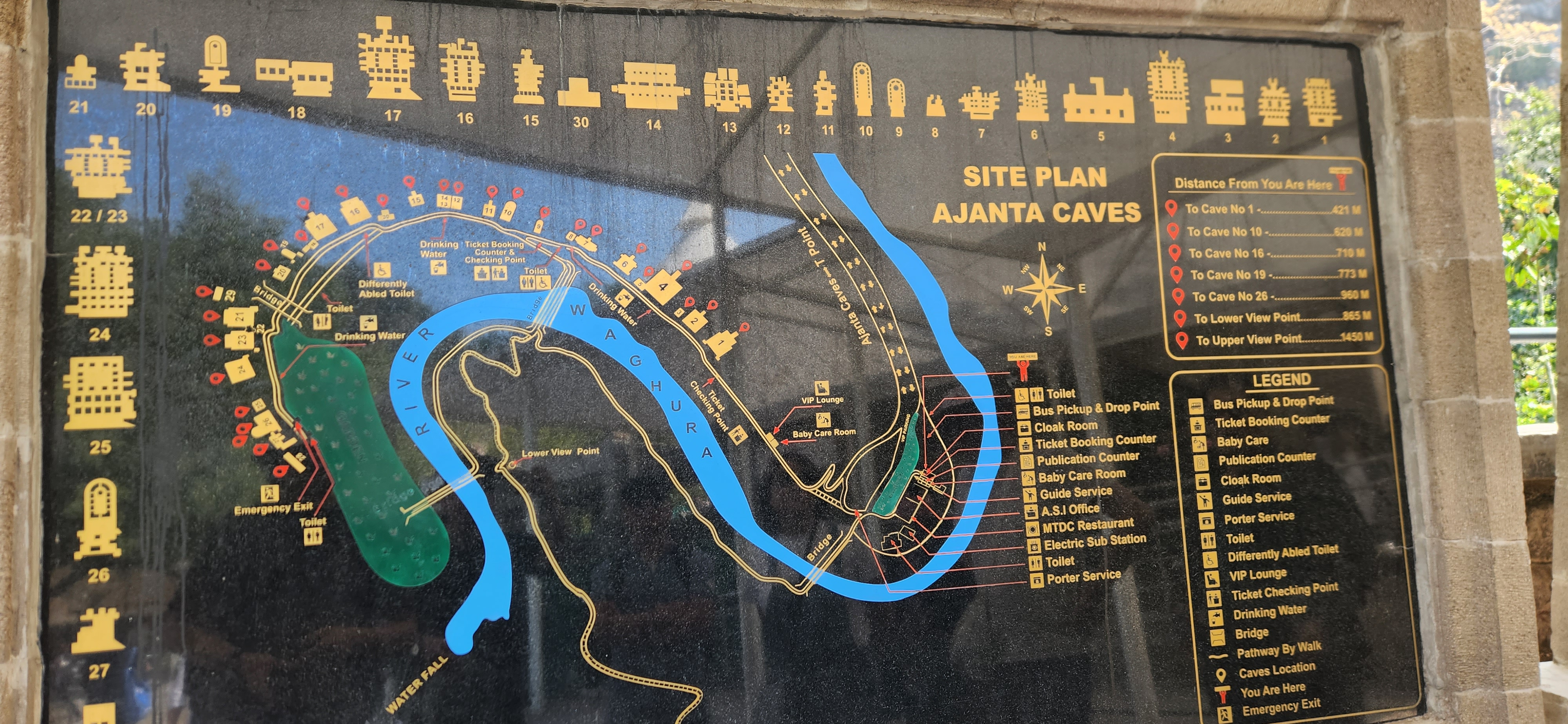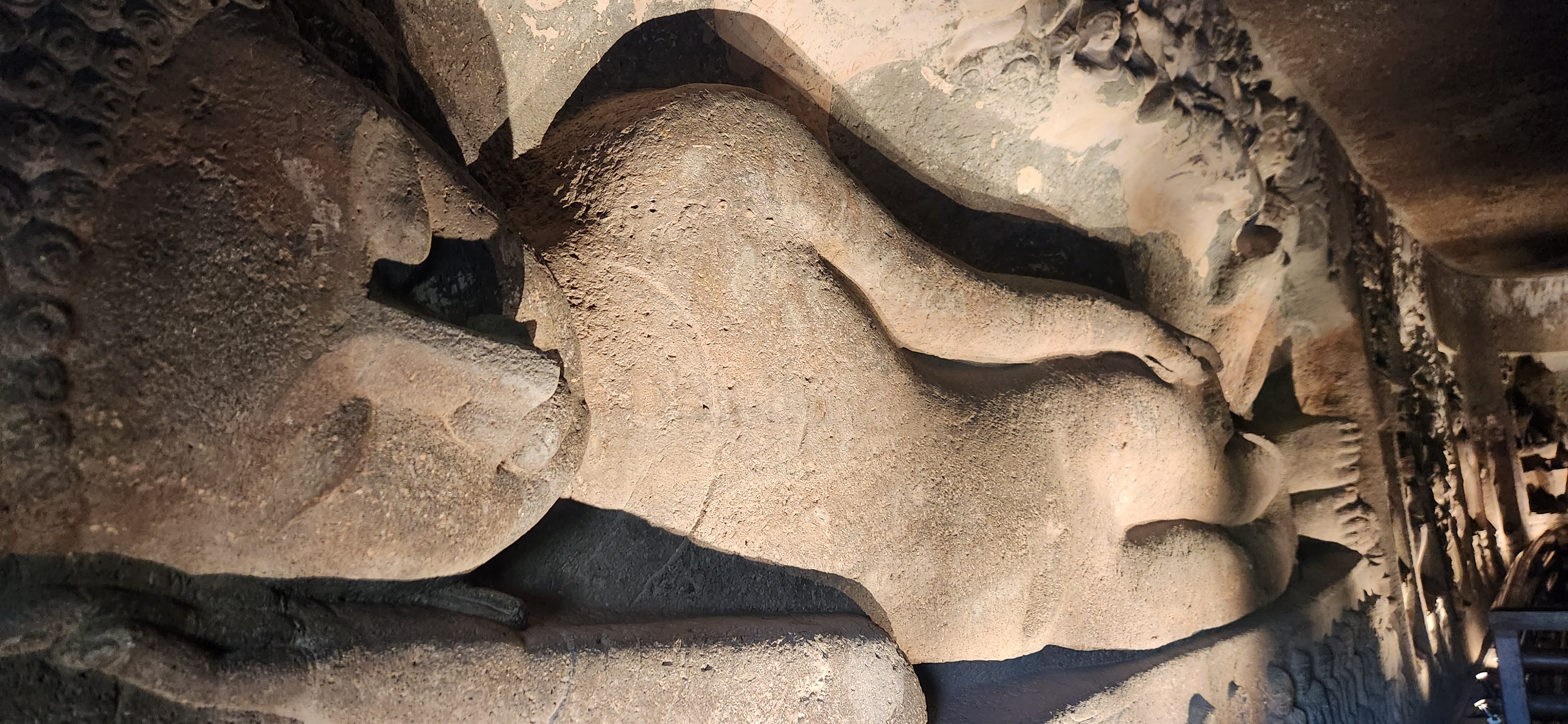건너편 전망대에 올라 아잔타 석굴을 바라본다. 70m높이의 절벽 중간에 석굴을 조성해 놓았다. 불현듯 한가지 의문이 든다. 어떻게 이런 석굴이 1000년 간이나 발견되지 않을 수 있었을까? 그것은 아마도 와고라 강의 범람과 관련이 있지 않을까. 강은 우기에는 늘 범람한다. 그것도 몇 년에 한번은 크게, 석굴내부에도 강이 범람해 물이 찼던 흔적이 보인다. 강이 범람하면 뻘과 진흙을 쌓아놓는다. 그곳에 풀과 잡초가 자라기 시작한다. 시간이 갈수록 무성해지며 퇴적토의 풍성함은 맹고나무까지 자라게 만든다. 안팍으로 자란 풀과 맹고나무는 무성한 덩굴을 만들어 석굴을 완전히 덮어버린다. 이 석굴이 1813년 존 스미스에 의해 발견된 후 1893년 세상에 공개된다. 그러나 뻘과 진흙에 의해 거의 완벽하게 보호되던 벽화는 산소에 노출되며 급격하게 휘손되기 시작한다. 이제라도 이 위대한 인류의 문화유산에 대한 종합적인 보호 대책이 나와야 할 것이다.