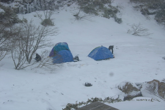 겨울 야영은 불편합니다. 너무 춥기 때문에 모든 것을 텐트안에서 해결해야 합니다. 음식도 텐트 안에서 해먹습니다. 원정을 가면 심지어 볼일을 텐트안에서 보기도 합니다. 애구 드러워라^^