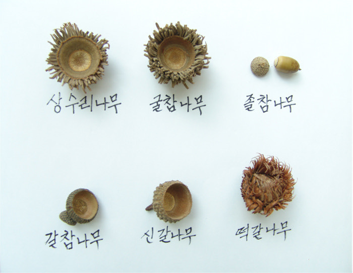 상수리나무 : 이 도토리로 묵을 쑤어 임금님 상에 올렸다고 상수리라 하다가 상수리 나무가 되었다고합니다.