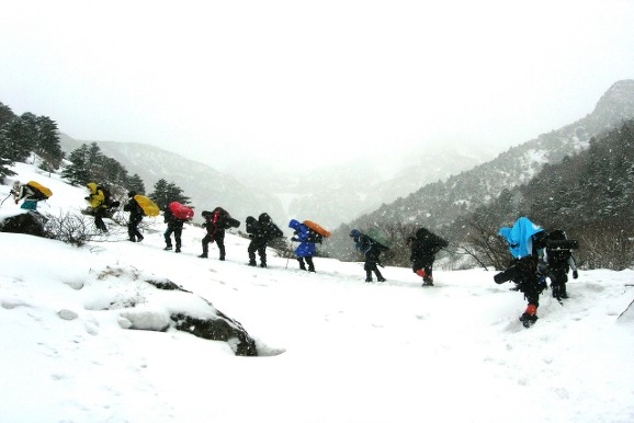겨울산은 일찍 운행을 접어야 합니다. 가능하면 4시정도, 늦어도 5시 정도면 운행을 접고 야영준비를 해야 합니다. 더 늦어지면 야영지를 찾기도 어려울 뿐 아니라 어두워져서 텐트를 치기에도 애를 먹습니다. 기온이 급강하하는 것은 당연하구요. 여름 생각하고 운행 시간을 잡았다가는 낭패를 보기 십상입니다.