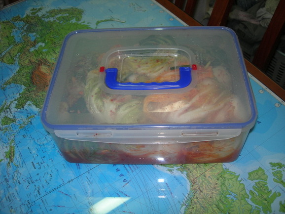 김치통을 닫고 하루는 바깥에 둡니다. 하루정도 익으면 냉장고로 들어갑니다. 2,3일 지나고 먹으면 됨니다.