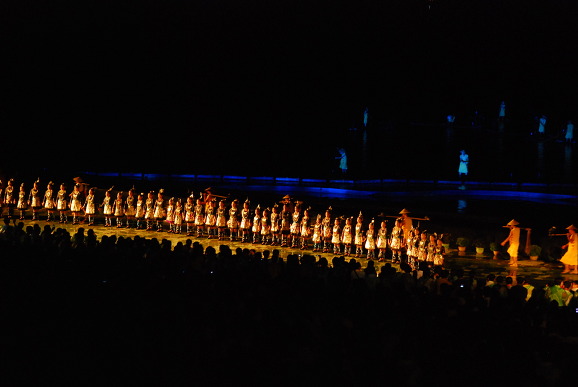 가다보니 어제 관람한 '인상유삼제' 공연장이 보입니다. 인상유삼제는 장례모 감독이 연출한 일종의 물위의 집체극입니다. 가격도 180원으로 그리 만만한 가격이 아닙니다만 출연진이 10000명이 넘는다고 하니 그럴만도 하겠습니다. 유삼제라는 기생을 주제로 했다고 합니다만 주제는 별로 신경쓸 것이 없고, 눈요기만 하면 되겠습니다. 그럼 사진 몇장 감상해 보시지요