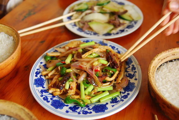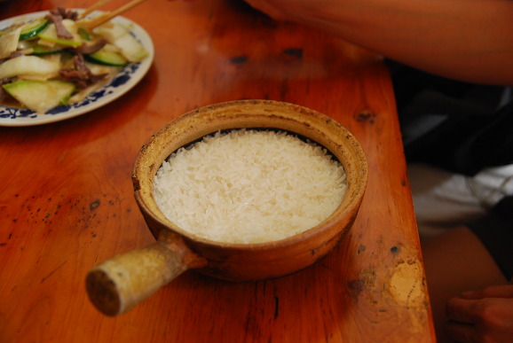 밤부보트를 마치고 길거리에서 점심을 먹습니다. 2원 짜리 사기밥^^에 반찬 몇가지를 시킵니다. 기대도 안 했는데 무척 맛이 좋습니다. 다시 한번 생각해봐도 깜장소는 전생에 중국넘이었나 봅니다.