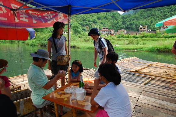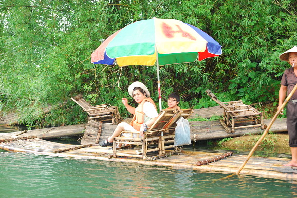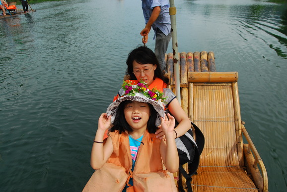 드디어 밤부 보트를 타러 갑니다. 양수오 관광의 하이라이트가 바로 이 밤부보트입니다. 대바무 보트를 타고 흐르는 물을 따라 2시간 정도 내려갑니다. 풍광이 훌륭한 강에서 조용히 미끄러져가며 한것 여유를 만끽합니다. 가격은 천차만별입니다. 보트나 코스가 차이가 나서가 아니라 협상하기 나릅입니다. 1인당 60원 정도 준 것으로 기억됩니다.
