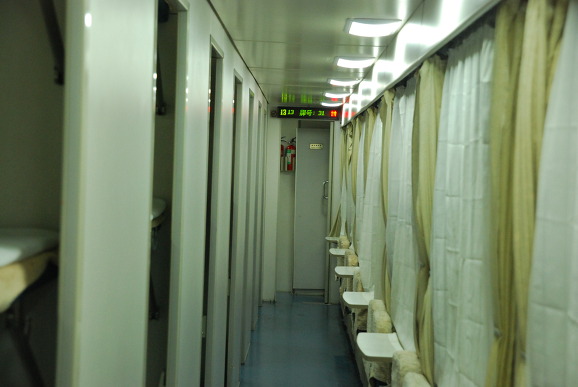 이번 구이린행 열차는 모두 꼭대기 자리만 받아 어쩔 수 없이 복도로 나옵니다. 창가에 보이는 코딱지 만한 테이블이 저희의 술자리였습니다.