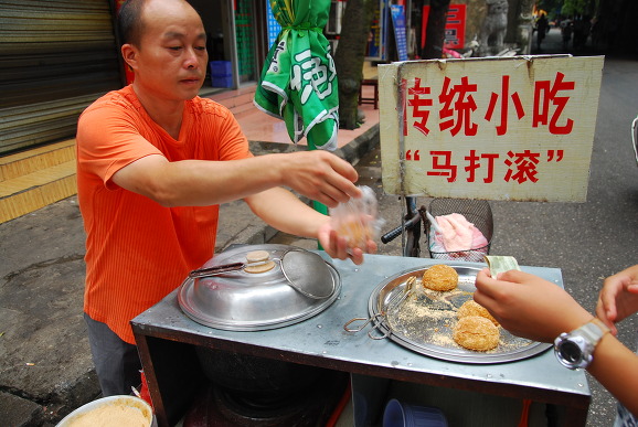 노점 음식도 먹어봅니다. 여행 중 가장 쏠쏠한 재미가 길거리 음식을 먹어보는 것이 아닐까요. 맛은 인절미와 똑같습니다.가격도 1원. 중국에서는 보기 드물게 기름기 없는 음식입니다.