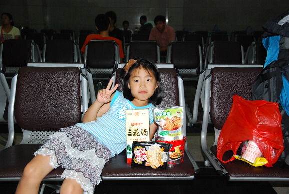 이제 구이린 여행을 마치고 광저우로 가는 기차를 기다리고 있군요. 간식을 삿다고 좋아해서며 찍어주었는데 바이주도 보이네요^^ 구이린삼화주,구이린 쌀로 만든 술입니다.