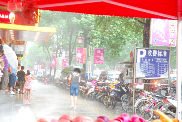 갑자기 비가 쏟아집니다. 위도가 한참 남쪽인 아열대지방입니다. 아마도 광저우나 구이린같은 아열대 지방에 사람이 살 수 있는 것도 여름이 쏟아지는 이 스콜때문이 아닐까 싶습니다. 상하이 항저우보다도 더 덥고, 기온이 40도(물론 중국당국의 공식발표는 언제나 39도입니다. 40도가 넘으면 쉬도록 법으로 정해져 있습니다^^) 넘기가 예사인 끈쩍거리는 기후를 일시에 바꿔주는 것이 스콜입니다.