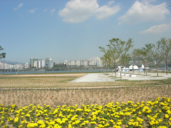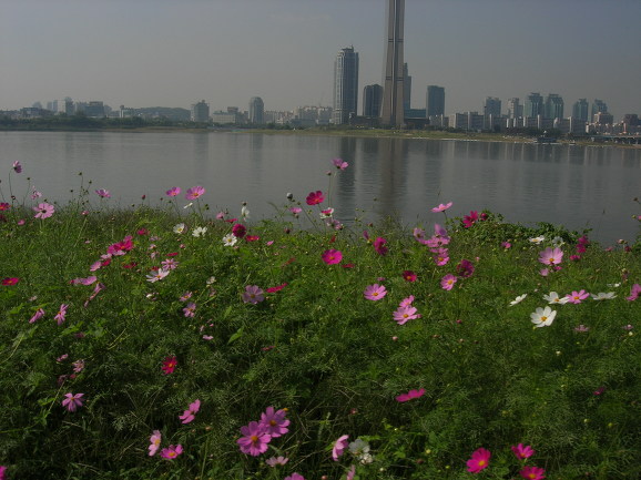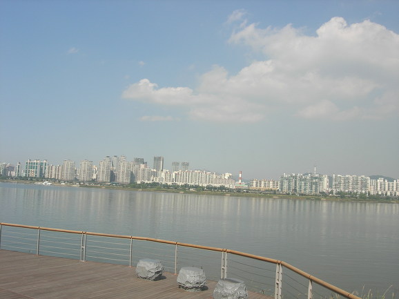 날씨가 너무 좋습니다만 한강에서 가장 큰 문제는 아마도 아파트밖에 보이는 것이 없다는 점일 겁니다, 꽤 많은 나라를 여행했다고 하는 저도 강변에 이렇게 아파트만 있는 도시는 본적이 없습니다. 위 사진에도 보이듯이 아파트 아닌 것은 굴뚝하고 남산타워밖에 없습니다.
