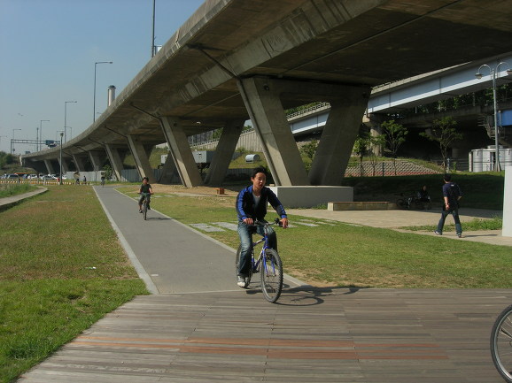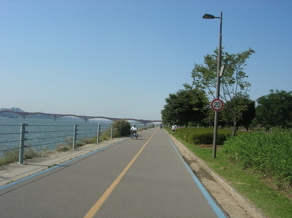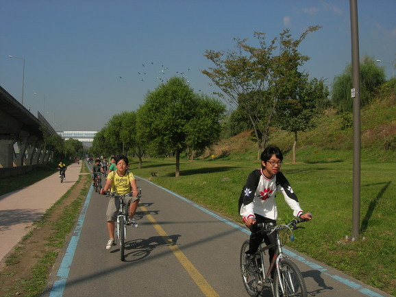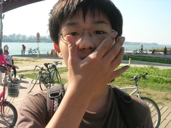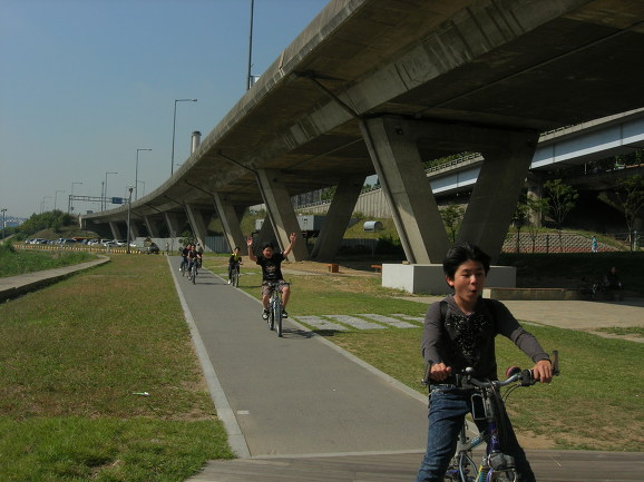 반포대교 북단입니다. 예훈이가 도착하는군요. 우리반에서 가장 활달하고 왕성한 활동력(?)을 보여주는 친구입니다. 반포대교 공사도 끝나서 분수도 생기고, 자전거 전용차선이 생겼습니다. 자전거로 출퇴근하는 저 같은 사람의 입장에서는 환영할만한 일입니다만 정치적인 색채도 있는 것 같아 좋지만은 않은 것 같습니다. 예나 지금이나 유난히 지방 선거를 앞에 두고 공사판이 많이 벌어집니다. 미리미리 시작하고 차분하게 진행하면 시행착오도 줄일 수 있을텐데, 언제나 선거 직전에 밀어 붙이기 식으로 진행됩니다. 또 녹색성장을 얘기하며 자전거 전용도로 건설을 주장하지만 실 내용은 땅파서 공사하자는 주장을 합리화시키기위한 도구에 지나지 않아 보입니다. 요즘 일고 있는 자전거 붐이 그리 반갑지만은 않은 이유도 여기에 있습니다.