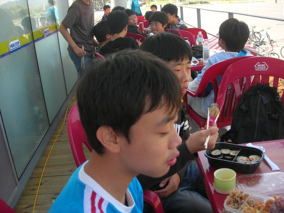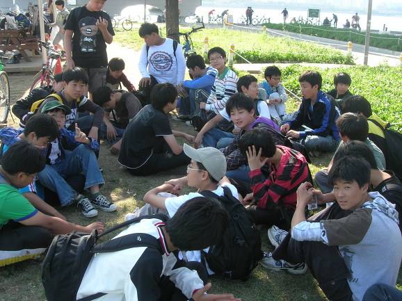 반포대교 남단에서 점심을 먹습니다. 주로 김밥입니다. 선생님 김밥은? 물론 없습니다. 빈정 상했냐구요? 아닙니다. 몇 년 전만해도 소풍에 선생님 김밥 하나 안 사오냐며 속으로 투털대기도 했습니다. 그러나 '세상이 바꼈지' 하고 포기하니 마음이 편합니다. 컵라면을 하나 사 들고 즐거운 마음으로 아이들 김밥을 뺏어 먹습니다^^