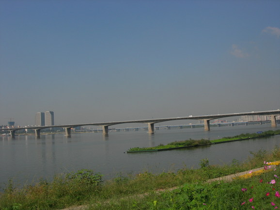 가을 한강 날씨가 환상입니다. 추석직후 10월 초, 1년 중 가장 쾌적한 기간인 것 같습니다. 멀리 원효대교가 보입니다. 건축가 서현이 우리나라에서 가장 아름다운 다리 중 하나라고 극찬한 다리입니다. 원효대교부터 한강다리에 대한 미학적 고민이 시작되었다고 소개합니다, 오래전에 읽었던 책인데 무척 재미있었던 것으로 기억됩니다. 건축에 관심있으신 분들은 한번 읽어보시기바람니다. '건축 음악처럼 듣고 미술처럼 보다' 효형출판
