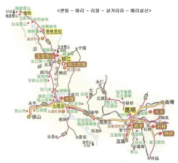 6. 차마대도 : 푸얼 - 쿤밍 - 따리 - 리장 - 더친 - 빵다 - 창뚜 - 라싸 - 시가체 - 네팔