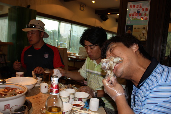 아무래도 그래 보이지요ㅎㅎ 겨우 김밥에 콜라나 마시면서 말이지요^^ 먼저 보이는 오른쪽분, 대전충남 중국여행동호회운영자인 막강파워미키님은 소령으로 예편을 하시고 지금은 여행가이드로 활동하시며 중국 시안에서 사업을 하고 계십니다. 두번째 보이는 스테파노님은 대전에서 건설회사를 운영하시며 중국여행과 푸얼차의 매니아 시지요. 세번재 음악티는 제 친구로 예술고등학교 선생이고 맨 끝의 사랑방 손님도 청주에서 교편을 잡고 계십니다. 그러니 저까지 포함해서 교사만 세명이네요. 많은 분들에게 미안한 얘기지만 교사가 여행다니기 좋은 직업인 것은 분명한 것 같군요.