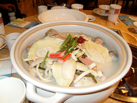 어 그런데 음식이 나오는데 모양새가 다릅니다. 훠궈에도 종류가 여러가지 있다고 합니다. 이것은 퇴지뼈를 우려내어 우리나라 감자탕처럼 먹는 훠궈라고 경원이가 설명해 주네요. 고추가루만 없지 맛은 정말 감자탕 비스무리^^합니다.