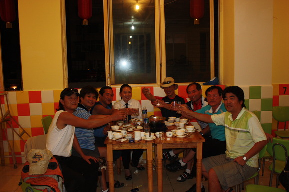 다 모였군요. 왼쪽에서 세번째 보이는 친구가 최정일 군이고 바로 옆이 은동대주점 부사장 되겠습니다. 어 그런데 이 사진을 누가 찍었지요? 아 우리의 기사인 곽라오스께서.... 어디 여행을 가나 제 얼굴이 나온 사진이 드문데^^ 사진 찍히는 것을 그리 좋아하도 않지만, 대부분 제 손에 카메라가 있다 보니 제 얼굴 나온 사진이 그리 많지 않습니다. 또 여행기를 생각하고 사진을 찍다보니 인물사진을 그리 많지 않습니다. 그나마 이번 여행은 다른 분들 손에 카메라가 많은 관계로 제가 자주 출연하게 되었습니다ㅎㅎ