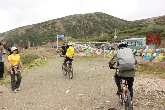 차마고도 라이딩의 어려움이 업힐에만 있는 것은 있는 것은 아닙니다. 비 포장된 구간에서 발생하는 엄청난 먼지입니다. 특히 트럭들이 많이 다녀 앞이 잘 안 보일 정도입니다. 그래도 묵묵히 이 길을 가는 라이더들이 가끔씩 보입니다. 이들의 굳건한 의지에 박수를 보냅니다.