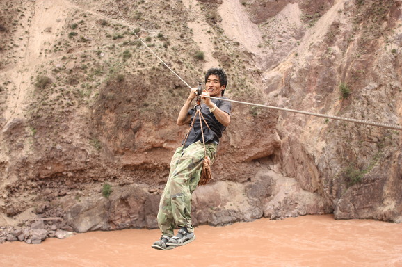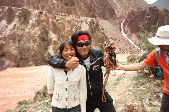 바이마리쓰는 서안에서 대학을 다니는 장족처녀입니다. 산골의 장족 처녀를 생각했는데^^ 서안에 사업을 벌이고 있는 막강파워미키님이 유난히 반가워합니다. 손에 들고 있는 도강 장치^^ 저게 다냐구요. 그렇습니다 저게 다 입니다. 도르래 하나에 한토막 줄.