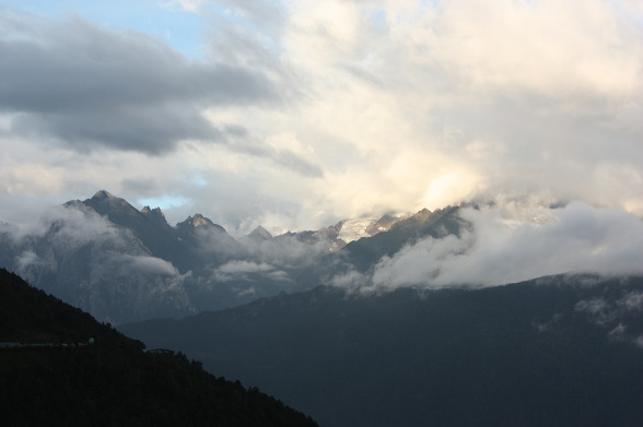 운무에 싸인 백마설산이군요.백마설산은 옥룡설산,합파설산.매리설산과 더불어 차마고도 4대 설산으로 불리는 곳입니다. 명색이 산에 다니는 사람으로 이런 곳을 트레킹도 못하고 지나가게 되니 아쉬움이 남습니다.