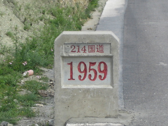 티벳으로 가는 유일한 길 214번 국도 1959라는 숫자는 라싸가지의 거리, 1959km 남았다는 것입니다. 조그만한 땅떵어리에서 살다보니 2000km라는 거리가 실감나지 않습니다. 부러운 넘들