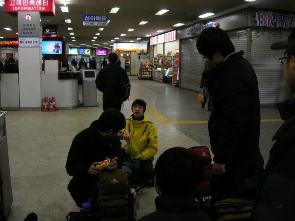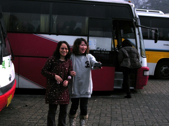 같은 버스에 동승한 홍콩분들입니다. 무주 스키장을 간다고 하네요. 눈을 볼 수 없는 지역이니 눈 구경이 재미난 놀이거리인 것은 분명합니다만, 이 버스는 무주 스키장으로 바로 가지 않습니다. 입구에서 내려 셔틀버로 갈아타야 합니다. 흔히 관광객들은 무주리조트까지 바로 가는 관광버스를 탑니다. 아니나 다를까 무주까지 가는 방법을 저희에게 물어오네요. 물론 저희의 목적지도 무주 리조트입니다. 그런데 왜 무주리조트 직행을 안 탓냐구요. 이 버스가 휠씬 쌉니다^^