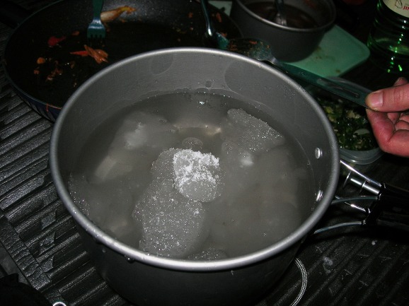 눈은 아무리 눌러 담아 녹여도 양이 얼마되지 않습니다. 따라서 연료도 많이 소모됩니다. 혹시 주위에 얼음이 있다면 눈보다 얼음을 녹이는 것이 좋습니다. 겨울산 텐트안에서 가장 중요한 일 중 하나가 국그릇이나 코펠이 엎어지지 않도록 하는 일입니다. 특히 이전에 쓰던 콜맨 버너는 균형이 높아서 잡지 않으면 엎어지기 십상입니다. 뜨거운 국이라도 텐트 안에서 엎어지면 말그대로 아수라장이 됩니다. 심한 경우 원정을 포기하기도 합니다. 탐험가 허영호씨가 90년대 남극원정 중 텐트안에서 엎어진 뜨거운 물에 다리를 데어 원정을 포기한 일도 있습니다. 그런데 그나마 높이가 낮은 버너가 나와서 많은 걱정을 덜고 있습니다. 국산 코베아 버너인데 화력도 좋고 안정감도 있습니다. 다만 한가지 흠이라면 그 화력만큼 시끄럽다는 것이지요^^