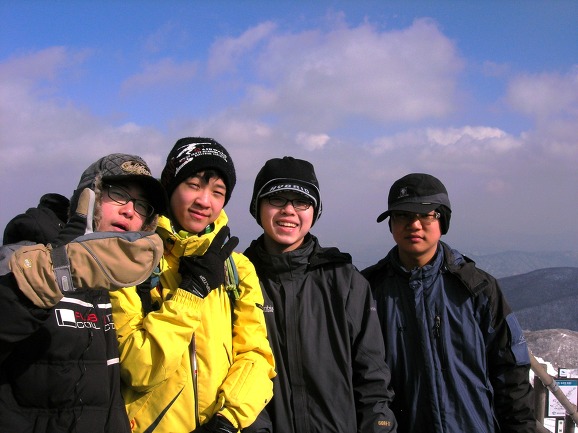 오른쪽에 있는 녀석이 3학년으로 이번에 졸업한 한상익군입니다. 나머지는 2학년생들, 지금은 3학년들이군요. 산에 올 때마다 가장 많이 고생하는 친구가 상익이입니다. 2009년 지리산 하계등반에서는 거의 기절수준까지 갔습니다. 그래도 한번도 산행에 빠지지 않는 기특한 녀석입니다.