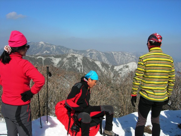 무룡산에서 만난 다른 산악회 회원들입니다. 배낭이 저희보다 큽니다. 저희보다 짐이 많으신 분들 만나기가 쉽지 않은데요^^ 여쭈어보니 어제 저희가 야영한 동엽령에서 주무실 거라고 하네요. 그런데 이런 저런 얘기를 나누다 보니 6분 회원 모두1인용 텐트를 가지고 다니신다고 하네요. 그러면 짐도 많아지고 할텐데... 제 개인적 생각이기는 합니다만 겨울산의 백미는 텐트안에서 나누는 다양한 이야기와 곁들이는 한잔의 소주가 아닐까 생각합니다만.. 물론 사람마다 생각이 다르기는 하겠지만요.