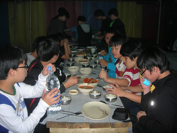 그리고 아침식사입니다. 메뉴는 김치찌게. 그 비싼 김치로 찌게까지^^ 어머니들이 많이 챙겨주셨습니다.