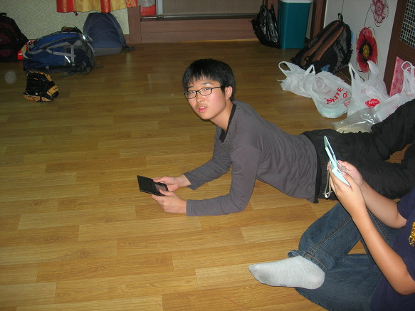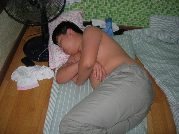 현우녀석이 숙소에 도착하자마자 훌훌 벗어 제낍니다. 남자중학교이기 망정이지 남녀공학이었으면 몇대 쥐어박혔을 겁니다.