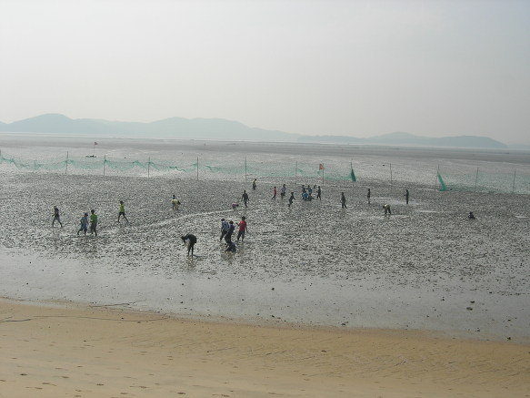 물이 빠진 갯벌에 많은 아이들이 놀고 있습니다. 갯벌에서 조개잡고 진흙 발라가며 노는 나라는 아마 우리나라가 유일하지 싶습니다.물론 갯벌이 한국에만 있는 것은 아니지만 다른나라 어디를 가서도 갯벌에서 진흙 뒤짚어 쓰며 노는 모습은 본적이 없습니다.
