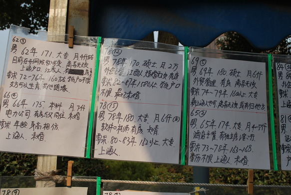 대졸자도 있고 있고 석사도 있고 하여간 우리나라에는 이미 인터넷으로 보편화된 짝짓기시장^^이 아직도 공원에 자리잡고 있습니다. 아직도 중국은 온라인보다는 오프라인을 좋아 하는 것 같습니다. 많은 터미널에서도 볼 수 있지만 춘절이라고 고향에 돌아가면서 40인치가 넘는 TV를 버스에 싣고 직접 가져갑니다. 배달이나 택배가 없는 것도 아닌데 말입니다.