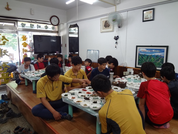 하산을 마치고 식사를 합니다. 산행을 마치 아이들에 표정에 안도감이 묻어나는 군요. 아! 앞에 보이는 맥주병은 소선생과 제가 먹은 것입니다. 오해하시면 아니아니 아니되옵니다^^ 산행주에 관해 몇 년 전 낭패했던 일이 생각나는군요.