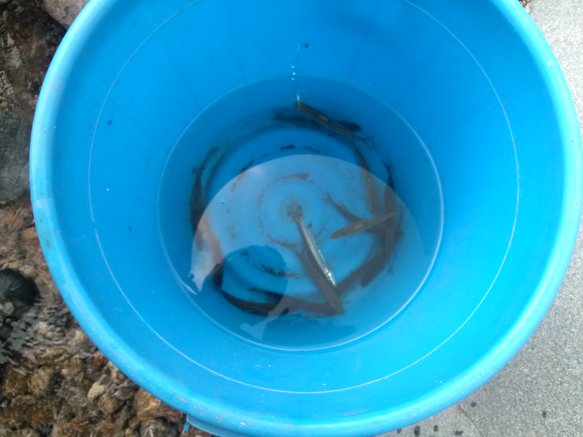 그래서 잡은 고기, 꺽지 피래미 등입니다. 한 10여마리 되는데 오늘은 수확이 적은 것이라고 하네요. 많은 날은 백여마리 이상 그냥 줍는다고 합니다. 지리산의 맑은 물과 거센 물살이 만들어 놓은 손 낚시터 되겠습니다.
