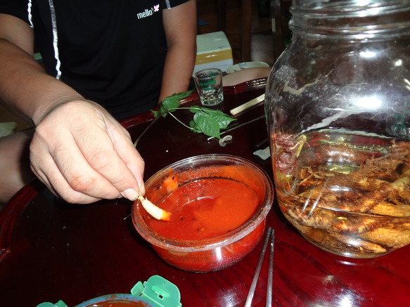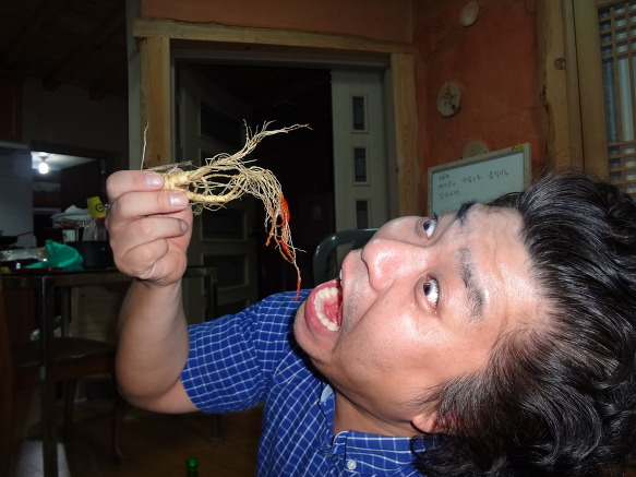 밖에서의 장작구이 요리를 마무리하고 집안으로 들어와 한잔을 더 합니다. 안주가 떨어졌습니다. 친구녀석이 잠시 기다리라고 하더니 가져온 안주, 장뢰도 아니고 산양삼도 아닌 '산삼' 입니다. 산삼을 안주로.....