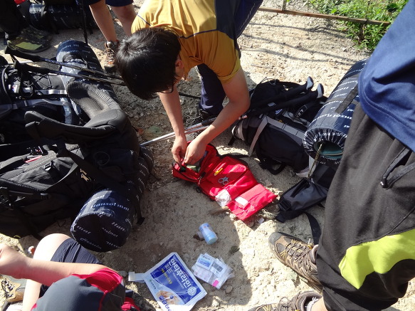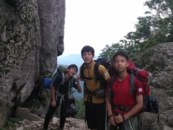 언제나 작은 배낭을 고집해 남을 배낭을 무겁게 만드는 3학년 명규군요. 홍일이와 빨간옷의 현구네요