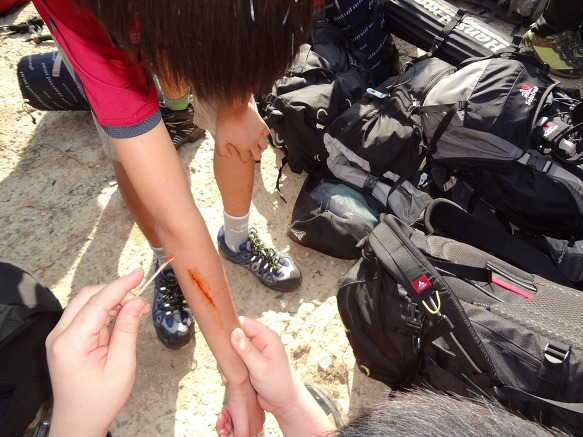 1학년 동방건의 다리군요. 하두 많이 다치고 긁혀, 무릅으로 지리산을 올랐다는 평가는 받은 녀석입니다. 난생 처음 온 산이 지리산이니 고생은 말해 무엇합니다. 성도 동방인데다 워낙 말하는 폰세가 재미있어 좌중을 우끼는 녀석입니다. 하여간 말은 청산유수이고 대답은 걸짝입니다.