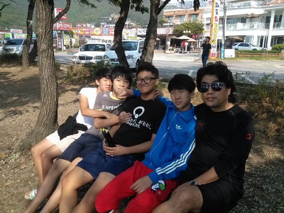 갯벌체험도 귀찮은 녀석들은 그냥 벤치에 앉아 음악을 듣습니다. 그러고 있으면 심심하지 않냐고 물어봅니다. 재미있다고 하네요. 하긴 꼭 뭐 해야 재미있겠을까요. 그냥 지들끼리 모여만 있어도 즐거운 나이 아니겠습니까?