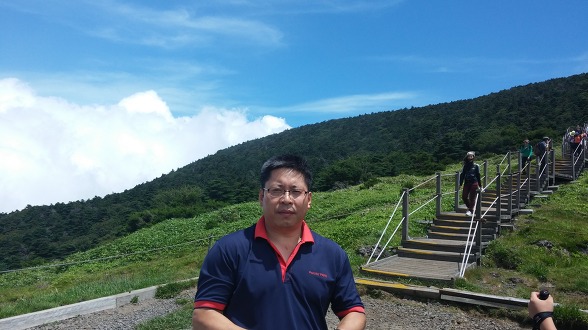 드디어 백록담에 도착한다. 역시 가스와 운무가 끼여 아무 것도 보이지를 않는다. 조금 기다려 보기로 한다. 그래도 겨울보다는 나은 편이다. 겨울에는 대부분 엄청난 바람과 추위때문에 오래 서 있을 수도 없다. 그나마 앉아서 운무가 걷히기를 기다릴 수 있으니 복 받은 편이라고 해야하나..