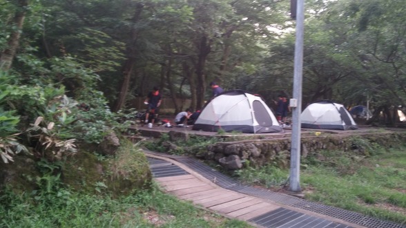 관음사 야영장에 도착하니 야영객은 그리 많지 않고, 당일로 놀러 온 사람들만 몇몇 보인다. 제주시에서 그리 멀지 않으니 제주 사람들이 놀러오기는 좋아 보인다. 다만 우리 같은 등반객이나 외지에서 온 사람들은 별로 없는 것 같다. 비행기타고 제주도까지 와서 텐트치고 야영하는 팀은 그리 많지 않는 모양이다. 덕분에 한가로운 야영장 분위기를 즐겨본다.