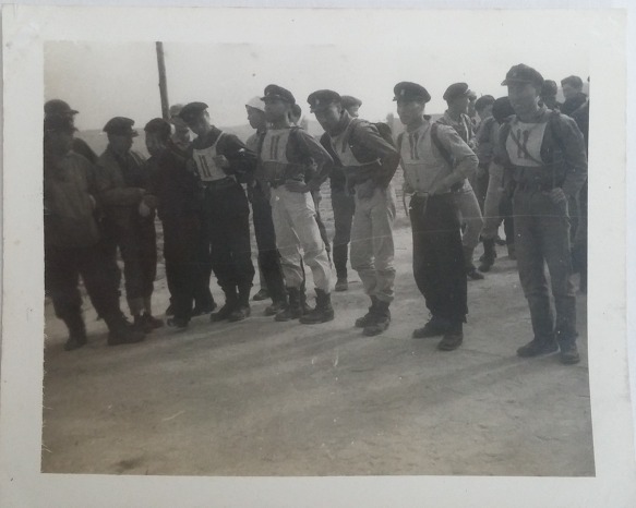 달리고 있는 선수들. 군화에 교모까지 쓰고 출전하였다.