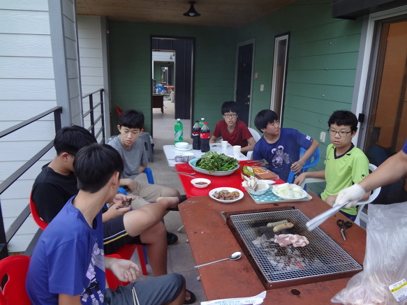 하산해서 점심을 먹고 일성콘도로 향한다. 지리산에 오면 늘 친구 집으로 들어 갔는데 이번에는 여러가지 문제로 콘도 숙박을 결정한다. 이제 힘든 산행 마치고 콘도에서 놀 일만 남았으니 아이들은 신이 났다. 동 하계 산행 후는 꼭 콘도나 펜션에서 숙박하는데, 편하기도 하지만 아이들의 산행 참가를 꼬득이는 미끼상품이기도 하다^^ 야외에 마련된 카페테라스에서 즐겁게 고기도 구워먹는다.