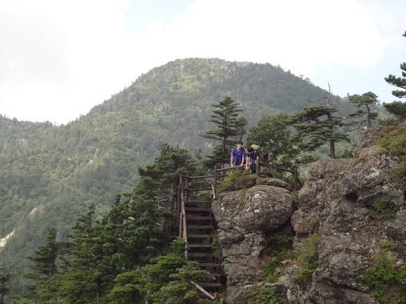 하봉을 거쳐 중봉으로 오르는 길이 매우 가파르다. 막상 도착해 보니 천왕봉 오르는 것 보다도 휠씬 더 힘들다. 몇 녀석이 쳐지기 시작한다. 먼저 가면 알아서 올라가겠다고 앙탈을 부리지만 얼르고 혼내면서 끌고 올라간다. 그렇게 중봉에 도착 휴식을 취한다. 일반적으로 지리산 능선을 타는 방법은 노고단에서 천왕봉까지 가는 것이다. 우리는 반대로 하봉 중봉을 거쳐 천왕봉으로 향하고 있는 데 상대적으로 사람이 많지 않다. 여름 휴가철까지 겹쳐 있으니 노고단에서 천왕봉 사이는 인산 인해를 이루고 있을 것이다. 나중에 장터목 산장에 도착해보니 역시 산장 전체가 인파로 북적거린다.