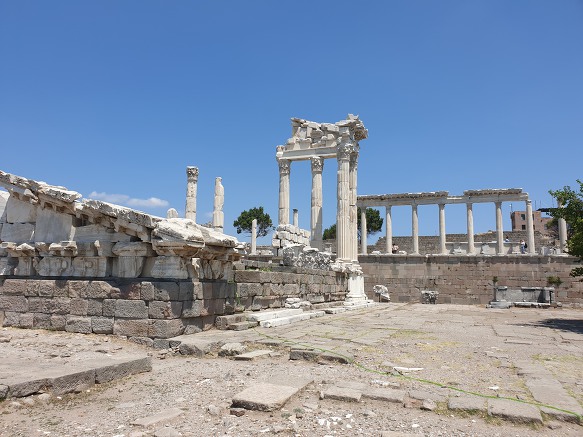 페르가몬을 대표하는 유적지는 누가 뭐라해도 아크로폴리스이다. 해발 275m 언덕에 세워진 아크로폴리스는 고대의 그 어느 곳보다 높은 곳에 위치하며 웅장한 모습을 하고 있다. 시내 한가운데 우뚝 높이 솟아 있어 어디서나 보이며, 방어에도 유리했을 것이다. 아크로폴리스는 차레로 어퍼)Upper) 미들(Middle) 로우(Lower)아크로폴리스로 나뉘고 종교와 정치, 상업과 사회문화적인 건물들이 조화를 이루며 나란히 세워졌다. 신전과 지배층의 주거지가 있는 어퍼 아크로폴리스가 가장 규모도 크고 화려하다. 특히 로마시대에 지어진 트라이아누스 신전은 남아있는 기둥만으로도 화려함의 극치를 보여준다. 신전은 로마 트라잔 황제가 사망한 후117-138 년 사이에 하드리안 황제가 트라잔 황제를 기리기 위해 페립테로스 양식으로 지어졌다.